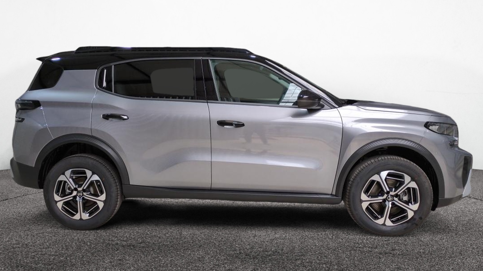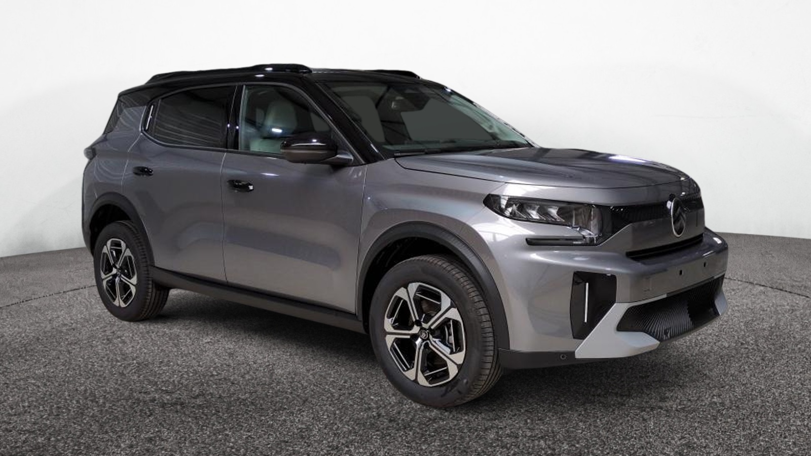 1 Prise USB type-C (charge rapide 3A) sur la console centrale,1 Prise USB type-C (charge standard et data) sur la planche de bord,2 Prises USB type-C (charge rapide 3A) en rang 2,6 Airbags (frontaux, latéraux AV et rideaux),ABS, ESP, TCS,Aérateurs latéraux en noir brillant et 2 aérateurs en zone centrale sur planche de bord,AFU, REF,Aide au démarrage en pente,Aide au stationnement AR,Aide au stationnement AV,Allumage automatique des feux de croisement,Anneau de remorquage AV et AR,Appuis-tête AV intégrés réglables en hauteur,Avertisseur sonore monoton,Banquette AR avec dossier fractionnable 2/3 et 1/3,Barres de toit Noir Brillant,Boîte automatique 6 rapports,Boîtier télématique: Appel d'urgence et Citroën Assistance les services Connect ONE pendant une période de 10 ans,Caméra de recul,Centre de roue noir avec logo,Citroën Head up Display (affichage tête haute) - LCD,Climatisation automatique,Condamnation centralisée avec PLIP,Configuration 7 places : Banquette 2 places en rang 3 avec dossiers rabattables 50/50, appuie-têtes réglables, accoudoirs et portes-gobelets individuels, Mise en portefeuille du rang 2 pour faciliter l'accès au rang 3, 1 prise USB type-C supplémentaire en rang 3 (charge rapide 3A), Plancher de coffre plat avec banquette rang 2 et 3 rabattues,Console centrale haute avec accoudoir et rangement fermé,Coques de rétroviseurs extérieurs Noir Brillant,Décors extérieurs Noir Brillant,Décors sur les panneaux de portes AV/AR et sur la planche de bord Sidérite,Détection de sous-gonflage,Direction assistée,Eclairage d'accompagnement et d'accueil,Eclairage d'ambiance monochromatique,Ecran central 10,25 " tactile: Apple CarPlay et Android Auto sans fil Système audio 6 HPs (DAB),Elargisseurs d'ailes Noir Mat,Essuie-vitre AV automatique (capteur de pluie),Feux AR 3D à LED,Feux diurnes à LED,Fixations ISOFIX sur les deux places latérales,Frein de stationnement électrique,Garnissage Maille Hello Noire /Toile enduite Gris clair Ambiance Metropolitan Grey avec Sièges Advanced Comfort 0PBX,Jantes alliage 17" ARAGONITE Diamantées,Lève-vitres AR électriques (descente séquentielle),Lève-vitres AV électriques (descente séquentielle),Navigation 3D sur écran central 10,25" tactile,Ordinateur de bord multifonctions avec indicateur de température exterieure,Pack Safety - Active Safety Brake (Freinage automatique d'urgence) - Alerte active de Franchissement Involontaire de Ligne - Alerte Attention Conducteur - Reconnaissance des panneaux de signalisation - Régulateur-limiteur de vitesse,Pare-brise acoustique,Plafonnier AV à LED avec lecteurs de cartes,Planche de bord Sofa recouverte de textile,Poches aumônières au dos des sièges AV,Poignées de maintien au rang 2,Poignées de portes extérieures Noir Brillant,Prise 12 V à l'AR de console centrale,Projecteurs LED,Recharge sans fil pour smartphone (puissance 15W),Répétiteur de clignotant dans le rétroviseur à LED,Rétroviseur intérieur électrochrome,Rétroviseurs extérieurs électriques,Rétroviseurs extérieurs rabattables électriquement et dégivrants,Sabots AV et AR,Siège conducteur réglable en hauteur,Suspension Citroën Advanced Comfort,Système de surveillance d'angle mort,Teinte de caisse métallisée Gris Mercury,Témoin de non-bouclage des ceintures de sécurité conducteur et passagers,Toit bi-ton Noir Perla Nera,Vitres et lunette AR surteintées,Vitres latérales teintées,Volant Gainé avec décor chrome,Volant réglable en hauteur et en profondeur,Volet d'occultation du miroir de courtoise conducteur et passager,
