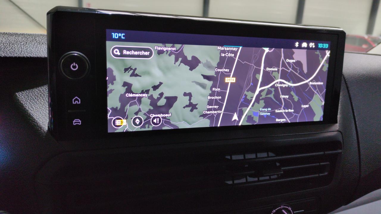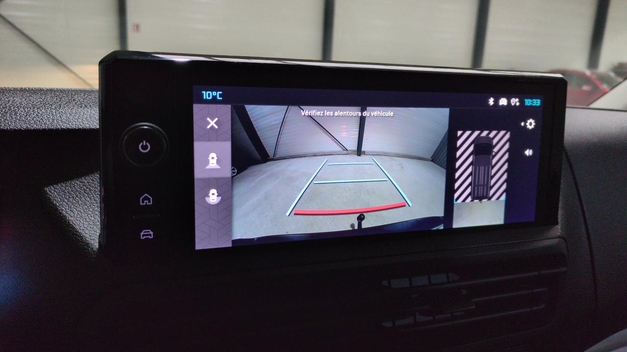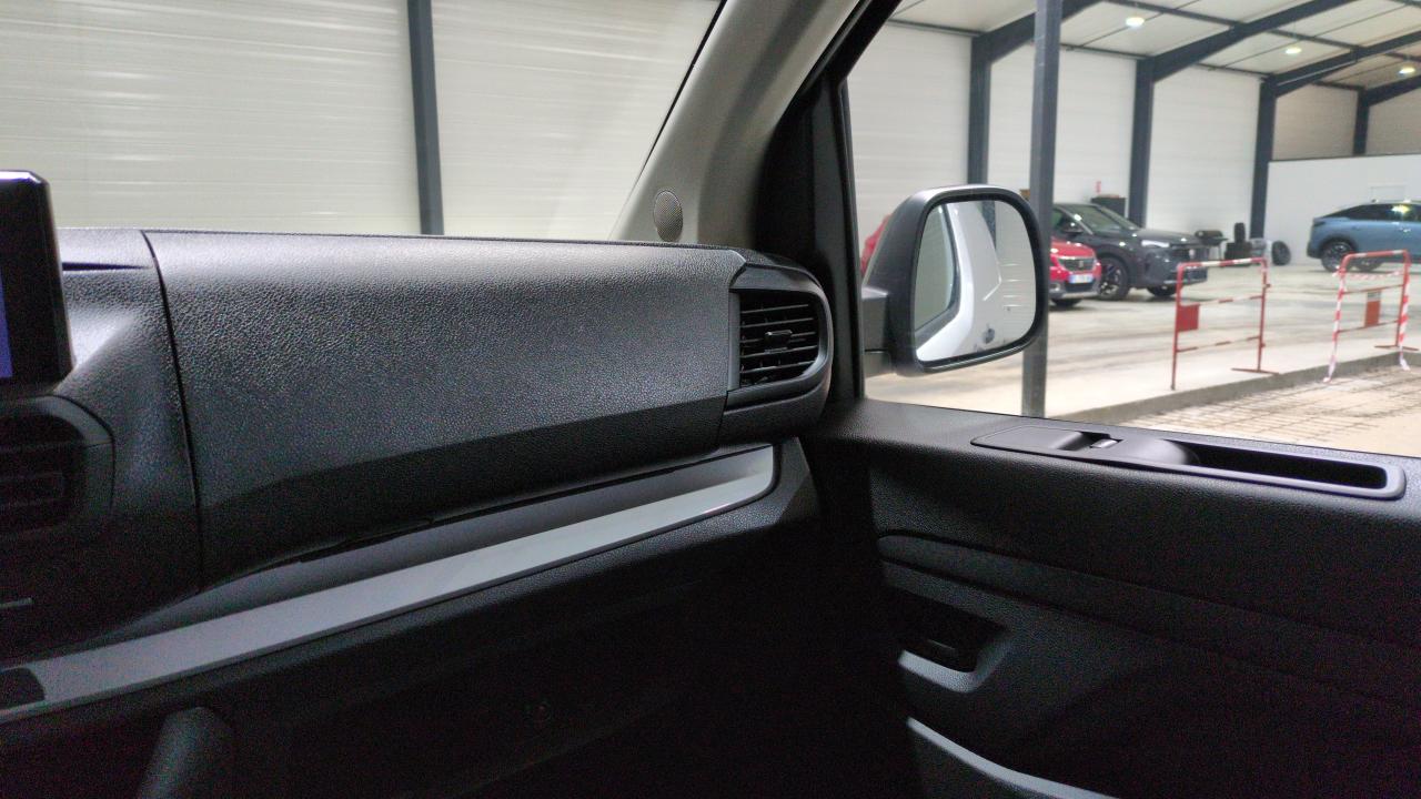 ABS, AFU, ASR et ESP avec aide au démarrage en pente,Aide au stationnement AR,Airbags frontaux conducteur et passager,Allumage automatique des feux de croisement et des essuie-vitres AV,Anneaux d'arrimage 6 répartis uniformément sur la zone de chargement,Banquette passager 2 places avec appuis-têtes réglables en hauteur ,Boucliers, Poignées de portes extérieures, Enjoliveur(s) de rail de porte latérale coulissante Baguettes latérales et Coques de rétroviseurs extérieurs noirs teintés masse,Climatisation manuelle régulée en température,Cloison pleine tôlée,Commandes radio au volant,Détection de sous-gonflage indirecte,Jantes tôle 16" grises avec cabochon noir,Lève-vitres AV électriques impulsionnels,Pack Sécurité : Freinage automatique d'urgence avec alerte risque de collision + Assistance au maintien dans la voie + Commutation automatique des feux de route + Détection inattention conducteur + Reconnaissance des panneaux de vitesse et recommandation,Pack Connectivité + Caméra : Combiné numérique 10" + Rétroviseurs extérieurs rabattables électriquement + Projecteurs antibrouillard AV + Prise 12V dans la zone de chargement + Mirror Screen compatible Apple CarPlay et Androïd Auto + Navigation 3D connectée + Ecran tactile 10" HD + Caméra de recul 180° avec affichage sur écran tactile 10" HD couleur,Panneaux de garniture de type Isorel en rang 2 et 3,Pare-brise feuilleté acoustique,Porte latérale coulissante droite,Portes AR battantes 50/50 tôlées à ouverture à 180°,Prise 12V (1200 W max) dans la boîte à gants,Projecteurs halogène (H15) avec feux diurnes intégrés,Revêtement de sol TPO dans l'habitacle,Régulateur - limiteur de vitesse,Rétroviseurs extérieurs électriques et dégivrants,Rétroviseurs extérieurs rabattables électriquement ,Sellerie Tissu bi-ton noir-gris,Siège conducteur individuel avec appui-tête réglable en hauteur et avec accoudoir Réglage : longueur, inclinaison, réhausse et lombaire,Teinte de caisse opaque Blanc Icy,Volant réglable en hauteur et en profondeur,