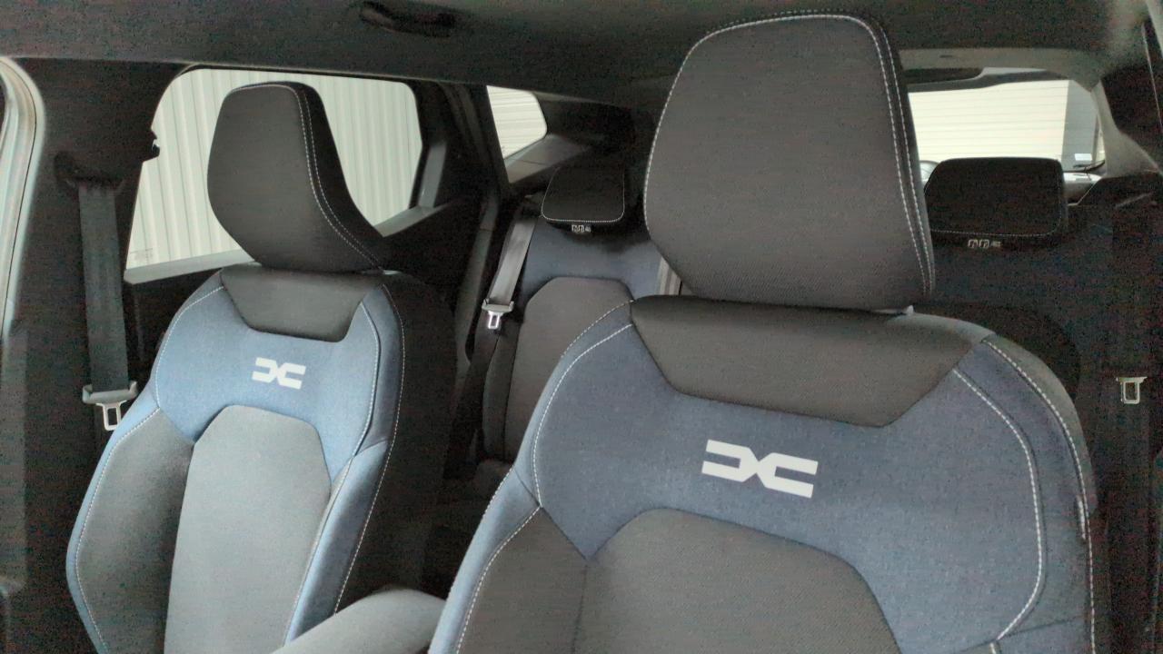 Airbag AV conducteur et passager,Airbag passager déconnectable,Airbags latéraux AV et rideaux,Alerte franchissement de ligne et assistant maintien dans la voie,Allumage des feux automatique et essuie-glace automatiques,Avertissement distance de sécurité,Avertisseur d'angles morts ,Banquette AR rabattable 40/60,Barres de toit longitudinales,Boîte de vitesse automatique 6,Boucliers ton carosserie,Caméra Multiview,Climatisation automatique,Commutation automatique feux de croisement/route,Console centrale semi haute avec accoudoir,Coques de rétroviseurs Gris Megalithe,Détection de perte de pression des pneus,Direction assistée,Feux de croisement à LED,Frein de parking électrique,Jantes alliage diamantées 18'' TAGASAN,Kit de gonflage,Lunette AR dégivrante,Lève-vitres AR électriques,Lève-vitres AV électriques,Media Nav Live ( Navigation avec trafic en temps réel + Système audio 3D Arkamys, 6HP, écram 10,1"),Mode éco,My Safety Switch (bouton de déconnexion des aides à la conduite),Ouverture du hayon manuelle,Pack City : Caméra Multiview + Avertisseur d'angles morts + Radars AV-AR,Peinture métallisée Gris Schiste,Plancher de coffre plat,Prise 12V coffre,Projecteurs antibrouillard,Radars AV-AR,Recharge smartphone par induction,Reconnaissance des panneaux de signalisation avec alerte de survitesse,Régulateur et limiteur de vitesse,Répétiteurs latéraux à LED,Rétroviseur intérieur jour/nuit,Rétroviseurs extérieurs électriques, dégivrants et rabattable automatiquement,Sellerie spécifique "Denim" avec logo Dacia réflechissant,Signature lumineuse en "Y" à LED,Siège conducteur réglable en hauteur et profondeur,Système anti-blocage des roues (ABS),Système de contrôle de traction (TCS),Système de contrôle de trajectoire (ESC) et aide au démarrage en côte,Système de fixation Isofix,Système de freinage d'urgence avancé (piéton, deux-roues et intersection),Système de surveillance de l'attention du conducteur,Tableau de bord numérique 7",Verrouillage centralisée,Vitres AR surteintées,Volant réglable en hauteur et en profondeur,Volant Soft Feel,