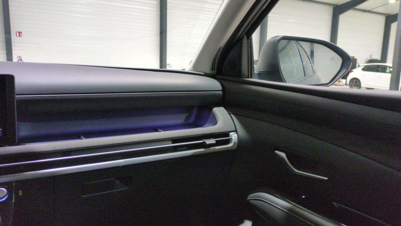 7 Airbags : central AV, frontaux AV, latéraux AV, rideaux AV/AR,ABS et EBD,Accoudoirs AV et central AR avec porte-gobelets,Aide au démarrage en côte,Aide au stationnement AR,Aide au stationnement AV,Airbag passager déconnectable,Alarme périmétrique,Alerte de circulation transversale AR avec fonction freinage,Alerte de présence de passager AR avec capteur ultrason,Allumage automatique des feux,Antenne de toit type requin,Appuie-têtes AV/AR réglables en hauteur,Assistance active au maintien et au suivi de voie,Assistance active à la conduite sur autoroute,Assistance à la sortie du véhicule,Boîte automatique 6 rapports,Calandre chromée "Parametric Dynamics",Caméra de recul avec lignes de guidage dynamiques,Capteur de désembuage automatique du pare-brise,Chargeur sans fil pour téléphone compatible,Clignotants AV à LED,Climatisation automatique bi-zone avec désembuage automatique,Compatibilité Apple CarPlay et Android Auto - connexion sans fil,Compteurs numériques 12,3",Connexion Bluetooth,Console centrale avec bac de rangement sous l'accoudoir AV,Contrôle de la pression des pneumatiques,Contrôle de trajectoire électronique ESP avec gestion de stabilité pour remorque,Contrôle de vitesse en descente,Direction assistée électrique,Dossier AR rabattable 40/20/40 à distance avec commande depuis le coffre,Drive Mode,Détection de fatigue du conducteur,Eclairage additionnel en virage,Eclairage d'ambiance intérieur à LED personnalisable,Feux AR à LED avec bandeau lumineux,Feux AV bi-LED,Feux de jour et de position AV à LED à effet miroir,Feux de route intelligents,Filet de coffre,Frein de parking électrique avec fonction auto-hold,Freinage anti multi-collisions,Freinage d'urgence autonome avec fonction intersections,Freinage d'urgence autonome avec reconnaissance piétons et cyclistes,Freinage régénératif intelligent modulable via palettes au volant,Jantes alliage 18",Jonc de vitres chromé,Limiteur de vitesse intelligent,Pare-brise avec film acoustique,Pare-brise et vitres AV athermiques,Pare-soleils intégrés dans les portes AR,Peinture métallisée Cypress Green,Poches aumonières au dos des sièges AV,Poignées de portes extérieures ton carroserie,Poignées de portes intérieures grain métal,Prise USB type C AV,Prises 12V (AV et coffre) et USB AV/AR,Protections AV/AR grain métal,Protections de seuils de portes grain métal,Rails de toit,Reconnaissance des panneaux de limitation de vitesse,Réception radio numérique terrestre (DAB),Régulateur de vitesse adaptatif intelligent (jusqu'à l'arrêt),Rétroviseurs extérieurs ton carrosserie,Rétroviseurs intérieur jour/nuit automatique,Rétroviseurs électriques dégivrants, rabattables électriquement avec clignotants intégrés,Sellerie cuir/tissu,Services connectés BlueLink,Siège conducteur avec support lombaire électrique,Siège conducteur réglable en hauteur,Siège passager AV réglable en hauteur,Sièges AR inclinables,Sièges AV-AR chauffants,Surveillance des angles morts avec assistance active au changement de voie,Système ISOFIX pour siège enfant aux places latérales AR,Système audio RDS, MP3, 4 HPs, 2 tweeters,Système d'accès mains-libres et démarrage sans clé,Système de navigation Europe,Système multimédia avec écran couleur tactile 12,3" avec reconnaissance vocale en ligne,TCS (Traction Control System),Transmission à commande électrique,Verrouillage automatique des portes en roulant,Verrouillage centralisé,Vide-poches dans portes AV/AR,Vitres AR surteintées,Vitres AV/AR électriques séquentielles,Volant chauffant,Volant et pommeau de levier de vitesses gainés de cuir,Volant réglable en hauteur et en profondeur,