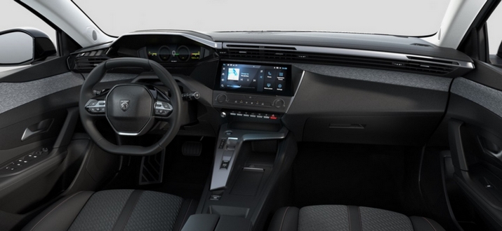 2 prises USB-C à l'AR,4 poignées de maintien,6 airbags Airbags frontaux conducteur et passager (passager neutralisable par clé) Airbags latéraux conducteur et passager AV Airbags rideaux aux places AV et AR,ABS,Aide au stationnement AV-AR,Banquette AR rabattable 1/3-2/3,Boîte de vitesse automatique (8 rapports),Climatisation automatique bi-zone,Commutation automatique des feux de route,Condamnation centralisée,Contrôle de traction,Démarrage mains libres avec 2 télécommandes 3 boutons,Diffuseurs d'air aux places AR,Direction assistée,ESP avec aide au démarrage en pente, et détection de sous-gonflage indirect,Eclairage intérieur : Plafonnier AV et liseuses AR à LED + Boite à gants et rangement de console éclairés à LED + Eclairage de coffre à lampe,Eléments de design extérieur : Calandre couleur caisse + Coques de rétroviseurs extérieurs Noir Brillant + Lécheurs de vitres Noir mat + Jupe AR Noir brillant + Antenne requin + Monogrammes AV et AR,Eléments de design intérieur : Planche de bord moussée avec décor tissu gris chiné + Panneaux de portes avec décor tissu gris chiné + Accoudoirs de portes en similicuir avec surpiqûres gris Tramontane + Éclairage des caves à pieds AV à LED,Essuie-vitre AV à déclenchement automatique,Feux AR 3 griffes à LED Allumage dynamique griffe à griffe,Fixations ISOFIX et Top Tether aux places latérales AR,Frein de stationnement électrique,Jantes alliage 17" BANGKOK diamantées Bi-tons Noir Orbital, vernis brillant,Lève-vitres AV et AR électriques, séquentiels,PEUGEOT i-Connect Radio DAB avec écran tactile couleur personnalisable 10'' HD, Bluetooth, Mirror Screen sans fil, 2 prises USB-C sur console AV (1 prise Data & Charge, 1 prise Charge),Pack Drive Assist : Régulateur de vitesse adaptatif avec fonction Stop&Go,Pack Safety Plus : Régulateur / Limiteur de vitesse + Freinage d'urgence automatique avec alerte risque de collision + Alerte active de franchissement involontaire de ligne et bas-côté + Reconnaissance étendue des panneaux de signalisation et préconisation de vitesse,Pack Vision 360° : Pack inviolabilité : Alarme périmètrique, volumétrique et anti-soulèvement + Aide au stationnement AV + VisioPark 360° (4 caméras) + Rear warning (surveillance d'angles morts, aide au changement de voie longue portée et alerte de trafic AR transversal),Peugeot i-Cockpit avec combiné numérique 10" personnalisable,Prise 12 V à l'AV,Projecteurs Peugeot Full LED Technology avec feux diurnes à LED 3 griffes à LED au-dessus des projecteurs, Allumage et commutation automatique des feux, Éclairage d'accueil et d'accompagnement,Rétroviseur intérieur électrochrome,Rétroviseurs extérieurs électriques, dégivrants et rabattables électriquement,Sellerie tissu gris TREMEZZO embossé, tri-matières avec accompagnement TEP Isabella Mistral, et surpiqûres Quartz,Siège conducteur et passager AV avec réglage manuel de la hauteur d'assise,Système audio avec 6 HP 2 tweeters et 2 woofers à l'AV, 2 HP large bande à l'AR,Teinte métallisée Gris Sélénium,VisioPark 360° (4 caméras),Vitres latérales AR et lunette AR chauffante surteintées,