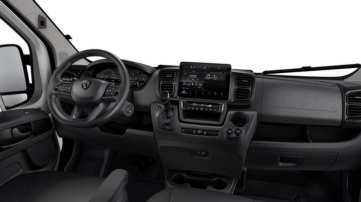 ABS, AFU, ASR et ESP (ESC amélioré avec assistance en cas de vent latéral, contrôle de stabilité de la remorque, et freinage après collision),Aide au démarrage en pente,Aide au stationnement AR avec avertisseur sonore pour piétons,Airbag conducteur,Airbag passager,Alternateur standard (180 A),Antenne radio numérique,Avertisseur sonore de marche AR,Banquette passagers 2 places,Batterie standard (95 Ah),Boitier télématique autonome (BTA),Boîte de vitesse automatique 8 rapports,Caméra de recul,Capteur de pression des pneumatiques (TPMS indirect),Climatisation automatique,Cloison tôlée,Condamnation centralisée avec plip,Crochets d'arrimage latéraux dans l'espace de chargement,Direction assistée électrique,Kit de réduction de CO2 - Spoiler central (DAM) - Guide d'air - Grille avec volets pilotés (AGS),Lève vitres AV électriques (séquentiel côté conducteur à la descente et à la montée avec fonction anti-pincement, séquentiel à la descente côté passager),Pack Chantier : Roue de secours, Support roue de secours, Suspensions AR bilame, Traction + aide à la descente (HDC),Pack Sécurité ADAS - Freinage d'urgence autonome avec détection piéton / cycliste - Aide au maintien dans la voie - Reconnaissance des panneaux de signalisation - Détecteur de fatigue ou d'inattention (attention assist) - Adaptation intelligente de la vitesse,Pack Techno Premium : Système multimédia écran tactile 10" avec Apple CarPlay et Andoid Auto sans fil, Navigation, Climatisation automatique, Chargeur de téléphone sans fil, Combiné numéique 7", Double port USB (A & C),Pare-choc AV grainé,Porte latérale coulissante droite tôlée,Porte-gobelets au milieu du tableau de bord,Portes AR à 2 battantes tôlés,Projecteurs halogène avec feux de circulation diurne,Rappel de bouclage des ceintures de sécurité,Roues en acier 16",Régulateur limiteur de vitesse,Réservoir d'ADBlue 19 litres,Réservoir à carburant de 90 litres,Rétroviseurs extérieurs électriques dégivrants,Sellerie en tissu crêpe noir avec appuie-tête plein,Siège conducteur avec accoudoir, réglable en hauteur et réglage lombaire,Système audio avec radio numérique DAB + Bluetooth + 1 port USB,Volant réglable en hauteur,